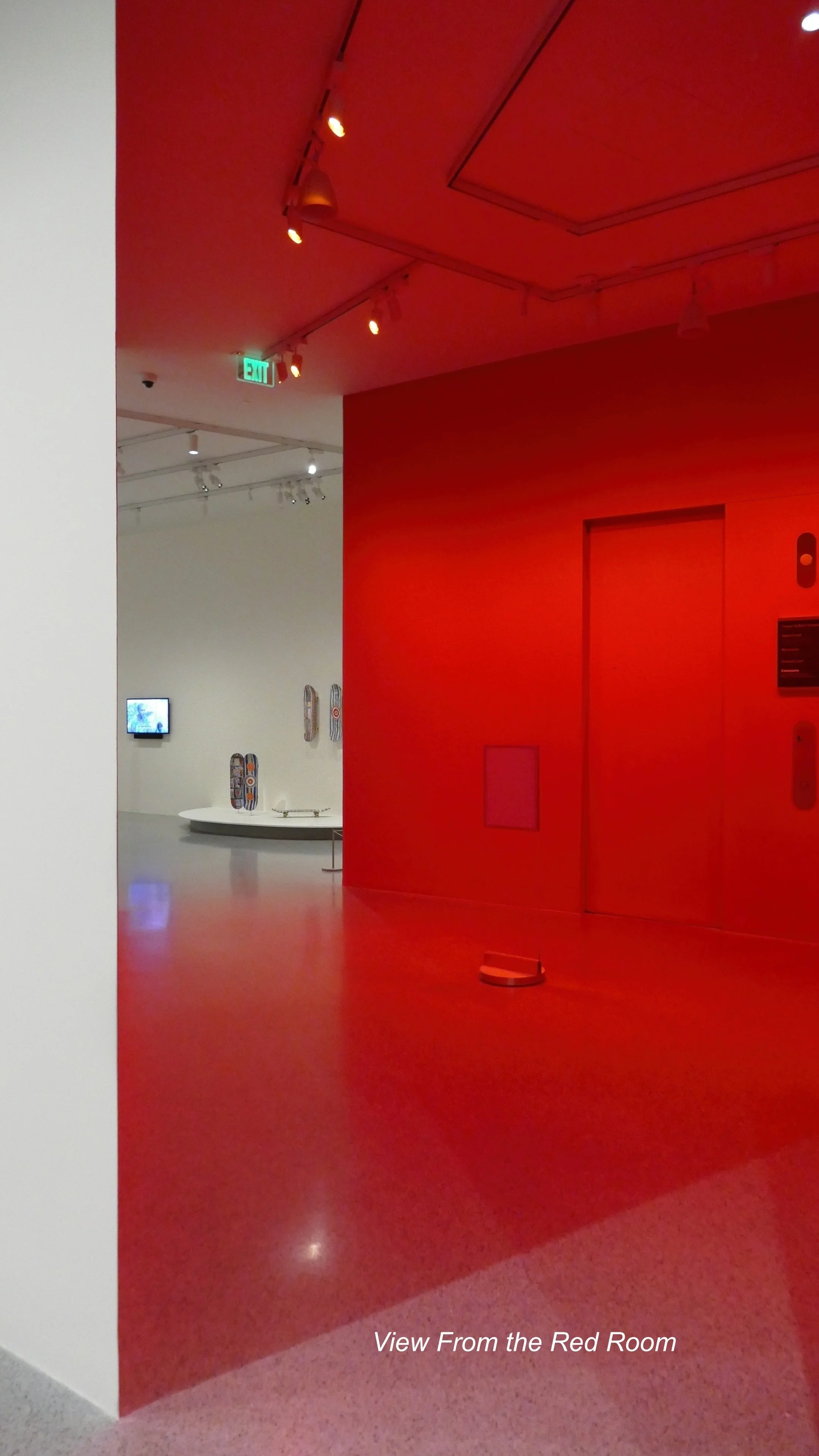 The symbol of a “Red Room” is found in many well- know works of literature, and in this work symbolizes a linguistic hardship experienced by the I.A. nations since 1800. The “Red Room” is a walkthrough space completely painted in blood- red paint—one feels tense and uncomfortable in this mystifying bright area, relieved by the exit door view of many objects in an adjacent gallery.